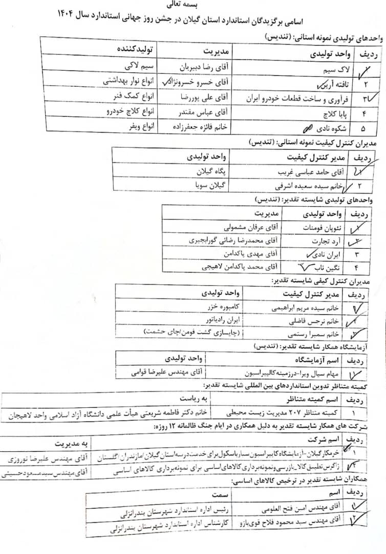 فهرست کامل برگزیدگان مراسم استانی روز استاندارد سالجاری بشرح ذیل می باشد: