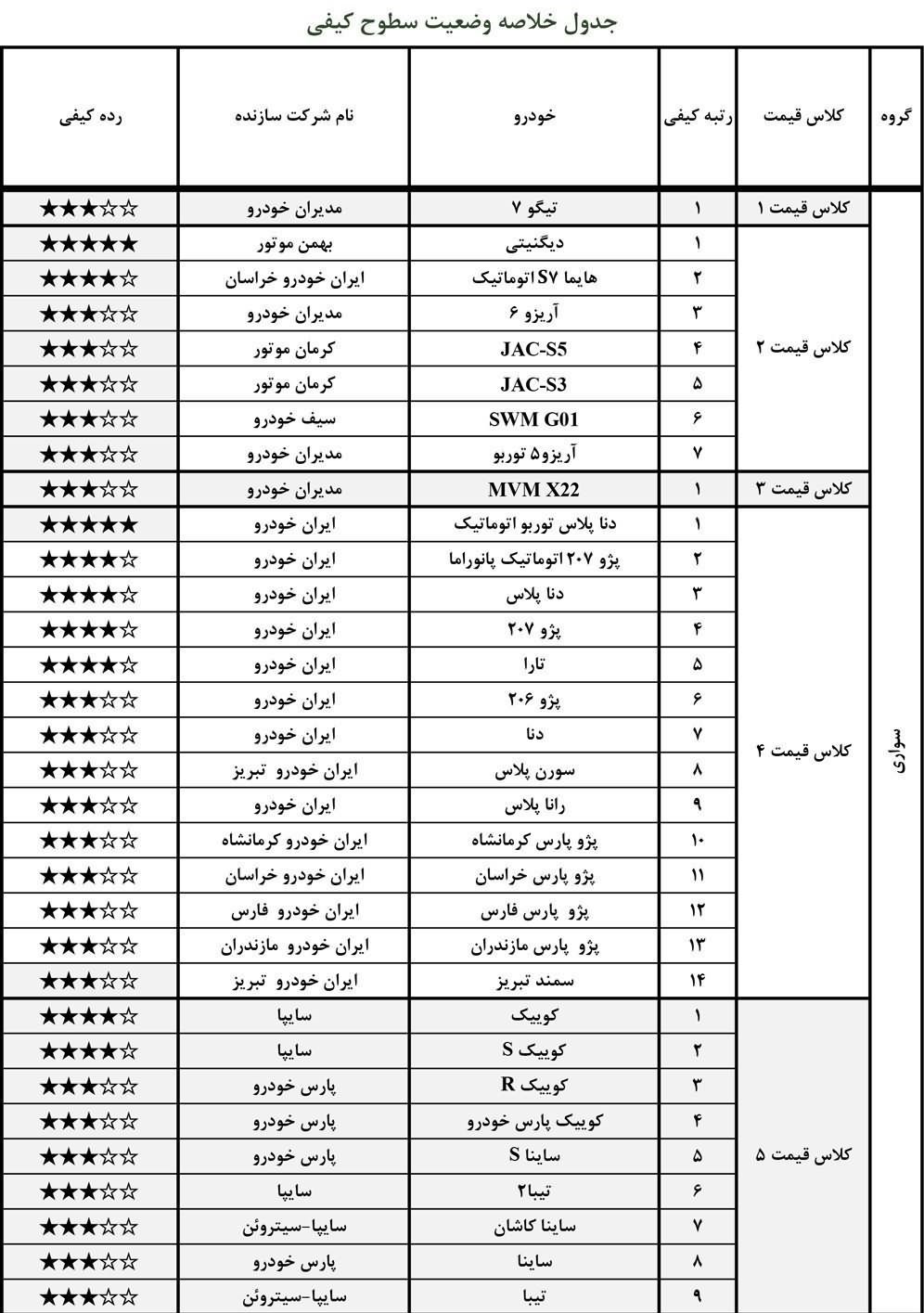 فهرست جدید با کیفیت و بیکیفیت ترین خودروهای داخلی منتشر شد